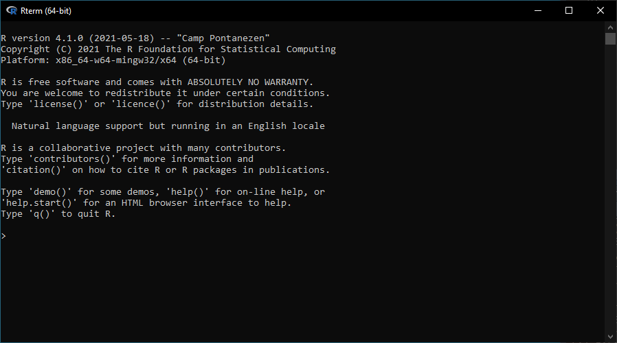 $character) and pressed theEnterkey. - We are now in an interactive R session. The terminal-like interface (with