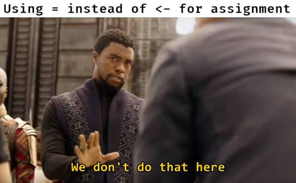 print(paste0("a=", a))Practically speaking, you can use = for assignment in R, but the <- operator is more commonly used in the R community. The use of <- is a convention that helps to distinguish between assignment and declaring the association between function arguments and their values. For example, in the function call mean(x = c(1, 2, 3)), the x = c(1, 2, 3) part is not an assignment but rather an argument specification for the mean function. Using <- for assignment and = for argument specification helps to avoid confusion and improve code readability.