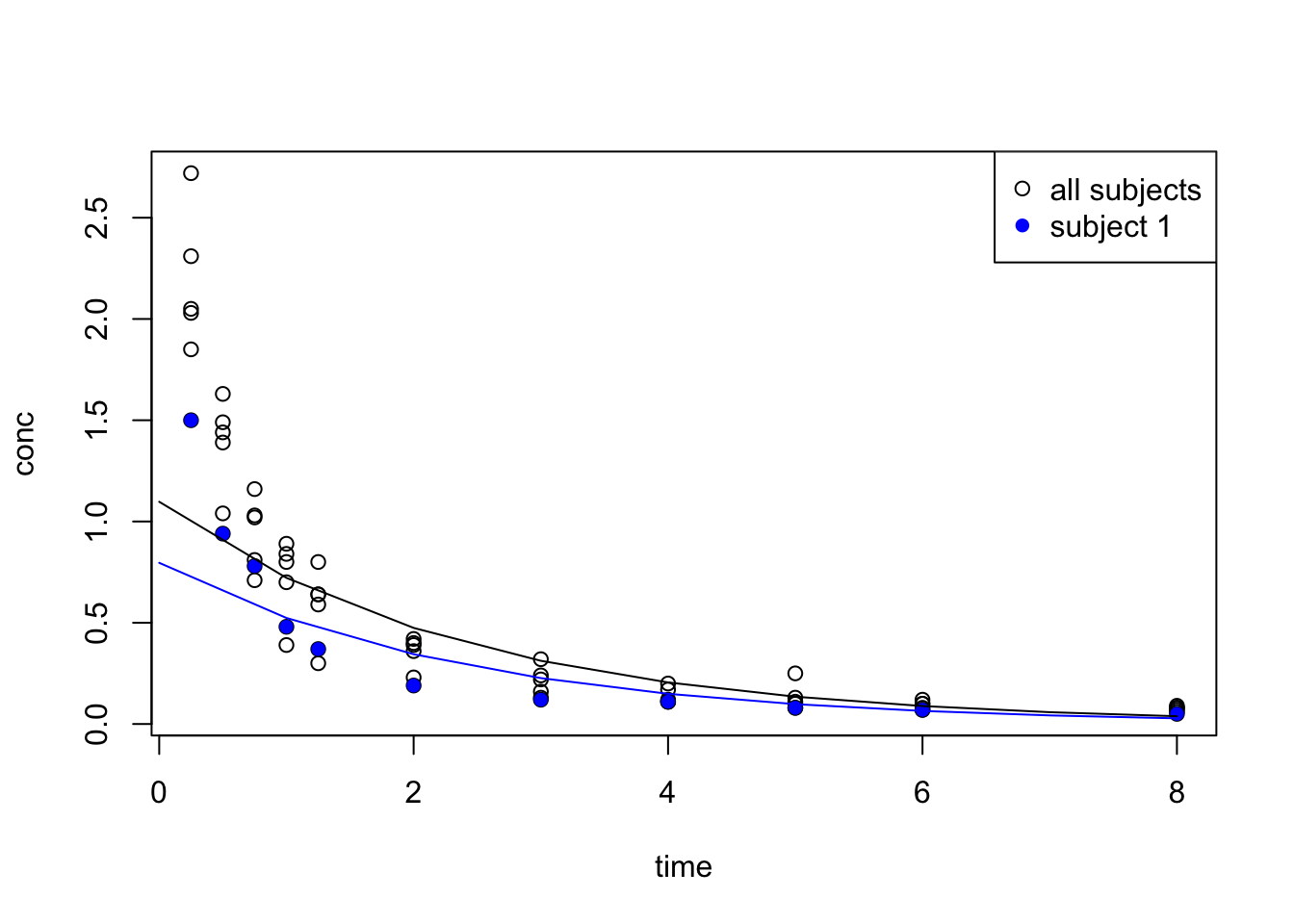 legend("topright", legend = c("all subjects", "subject 1"), pch = c(1, 16), col = c("black", "blue") )