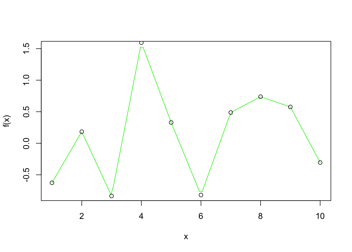 f <- splinefun(x, y)